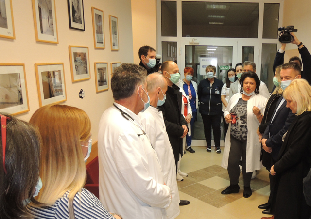 licke-novine@licke-novine.hr www.licke-novine.hr 8. prosinca 2022. u 11 sati GOSPIĆ - Jutros se na ulazu u Opću bolnicu okupio dio osoblja, a stigao je i Ernest Petry, ličko-senjski župan, kako bi pustio u rad nove uređaje za sterilizaciju bolničke opreme i uređaje za proizvodnju osmozne vode za Odjel hemodijalize.Nekoliko dana odjel nije radio, pa su se pacijenti na svojoj koži osvjedočili što znači putovati u drugo mjesto da bi se očistila krv. - Ode je bilo lipo, a kad smo došli u Zadar derala je bura i gotovo nas bacala po dvorištu.-reče jedan korisnik hemodijalize, zadovoljan što više neće morati putovati. Kako je rekla ravnateljica Bolnice Sandra Čubelić, ova dvoja ulaganja "teška" su 1,7 milijuna kuna. Sterilizator se inače nalazi u staroj poliklinici ali sada je dobio novu opremu. Osmoza je napravljena u nekadašnjem muškom zahodu starog internog odjela u najstarijoj bolničkoj zgradi koja je početkom Domovinskog rata bila omiljena četnička meta iz susjedne vojarne. Prvi pogodak je dobila kad je svanuo dan nakon prvog noćnog napada na Gospić. Tijeko adaptacije cijelog gornjeg kata, znači muškog i ženskog internog odjela mnogo je toga trebalo srušiti i popraviti. Četničke granate su gotovo sve uništile, a pogotovo bezcementni lip. Prije rezanja trobojnice u sterilizaciji par riječi rekao je i gost, Ernest Petry, ličko-senjski župan, čiji je djed svojevremeno bio šef Bolnice. Petriy je obećao i dalje pomagati zdravstvene ustanove u cijeloj županiji kako bi se osigurao bolji standard svim stanovnicima, naglasivši da je već postignut dogovor s Vladom u novom državnom proračunu. Cijeli proces pratilo je jato bilih labudova: cure i momci učenici srednje medicinske škole u bilim odorama. Rekoše da su oni samo jedna od tri grupe iz škole. (M. Čuljat) | |