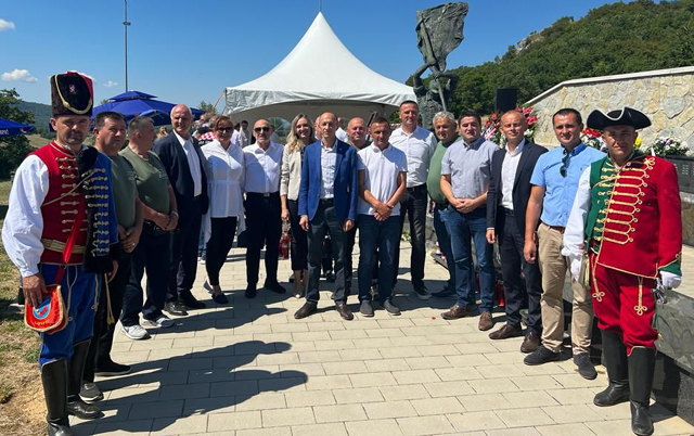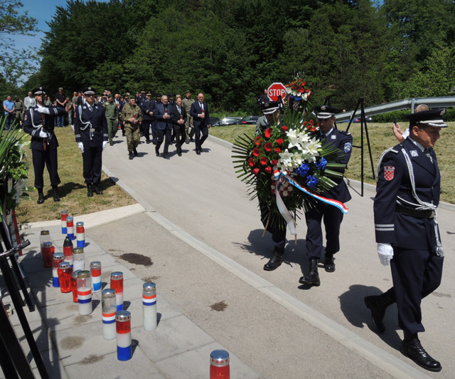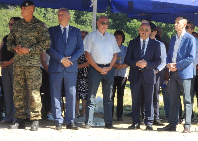| Starčević, Vukić i Petry, otkrivaju obnovljenu spomen-ploču pobijenim Hrvatima nakon Drugog svjetskog rata/Snimio Marko ČULJAT Lika press | |
