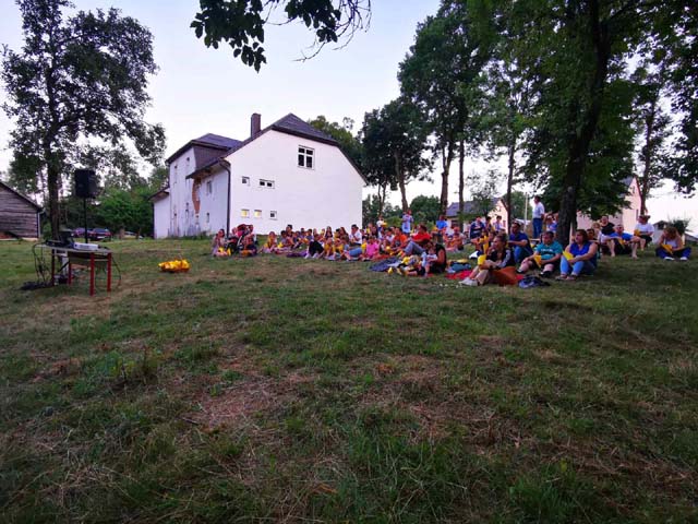 | Pred početak prikazivanja prvog filma u školskom dvorištu u Mušaluku | |