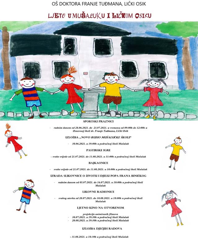 Uspješno završeno "Ljeto u Mušaluku"NOVI ŽIVOT MUŠALUČKE PUČKE ŠKOLEProteklih ljetnih praznika mališani Ličkog Osika i okolice okupljali su se kod obnovljene školske zgrade. | |