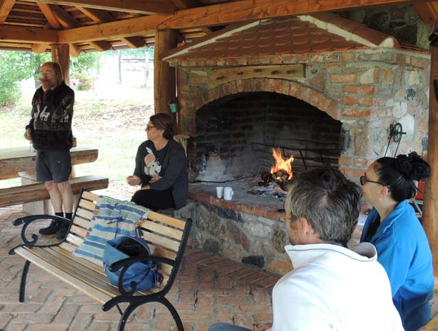 licke-novine@licke-novine.hr www.licke-novine.hr 20. RUJNA 2021. U 22.30 SATA KRŠ - U 'ednom zaselku ovog kosinjskog sela u kome su ne samo obnovljene stare i derutne kuće, nego su od dijela starog materijala kompletno presložene i obnovljene i s nekim popratnim sadržajima za ugodan boravak u prirodi nastalo je Eko selo Krš poduzetne obitelji Baričević iz Otočca. Kod njih je protekla tri dana boravilo dvadesetak slikara koji su stigli u organizacija gospićke Likovne udruge Lika na koloniju. Slikalo se punom parom, čak i jutros, a umjetnik Željko Kranjčević-Winter, ponijet će kući u Rijeku svoju instalaciju od tri elementa da dovrši pozadinu svoje ispletene mreže veličine srednjeg radijatora. Svoju drugu sliku danaska j' završila i naša suradnica Martha Miletić, pitavši razrednicu prof. Anelu Serdar-Pašalić, slobodan dan. U Kršu smo bili nešto prije dogovorenog termina, ali je kapija bila zatvorena. Nastao je nekakav poremećaj u hodogramu, Martha je postala zera nervozna, al' sam je ka' sivonja upra' da idemo unutra. Otvorio sam lisetinu na ulazu, uša autom u dvorišće i nama zatvorija lisu. Bome je bilo ladno, brijala je bura priko Baričevićevih brnašica iz pravča Otočca. I Martha se brzo snašla, ušavši u jednu kamenu kuću noseć' svoj nezavršeni rad pod nadstrešnicu rekavši da unutra dvoj' kolonista igraju - biljar. Marthi sam uz ognjište, na kome se mogu peć i dva janjca, naša zaklon dok sam se snaša' i naložija vatru. Malo smo grijali leđa na domaćem ognju. Uskoro je bila završena njena slika laneta iz lovišta koje graniči sa Selom i odnila ju uz jučer završenog otočkog labuda s Gacke kojega je fotografirala dva tidna ranije. Potlje smo ošli u ednu brvnaru di je počelo okupljanje i ostali' kolonista i bome smo uz divankanje lipo jaužnali niku ukusni kobasica, a bilo j' i domaće base OPG-a Miškulin iz Smiljana. Za Kolonije je nastalo tridesetak slika koje će prodati Rotari klub iz Gospića kako bi pomogli jednu siromašnu pazarišku obitelj. (MaČ) | |